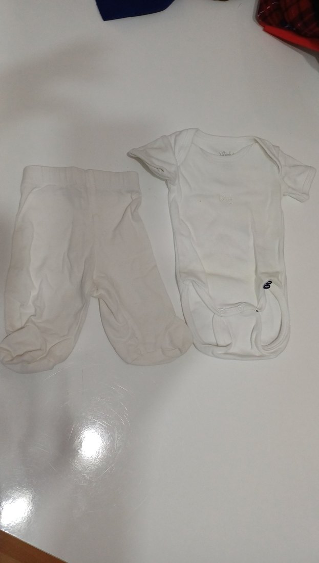 Pamuklu, kısa kollu ve ayaklı pantolonlu, desensiz beyaz bebek hastane kıyafeti. Yeni doğanlar için rahat ve yumuşak dokulu.