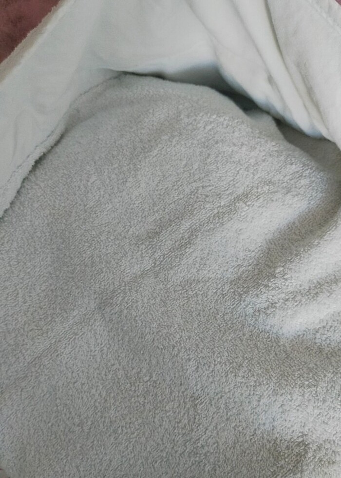 Yeni doğan bir yaşa kadar kullanılabilen şapkalı kare açık mavi renkte banyo havlusu temiz ve sağlam
