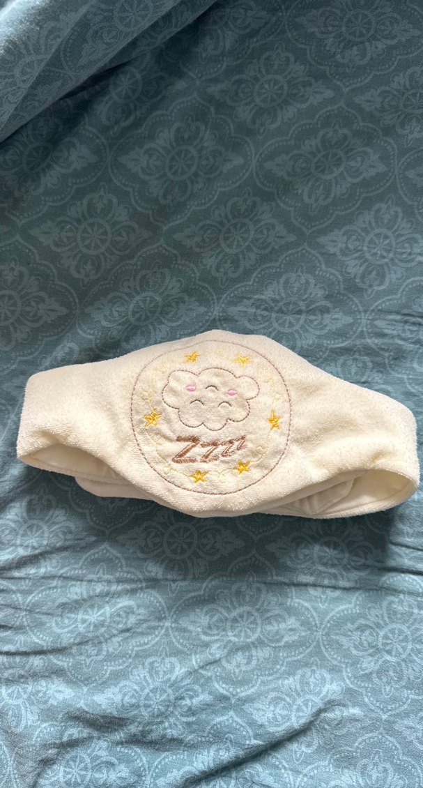 Pastel beyaz renkte, yumuşak ve sıcak kumaştan yapılmış, nakışlı bulut ve yıldız desenli gaz kemeri
