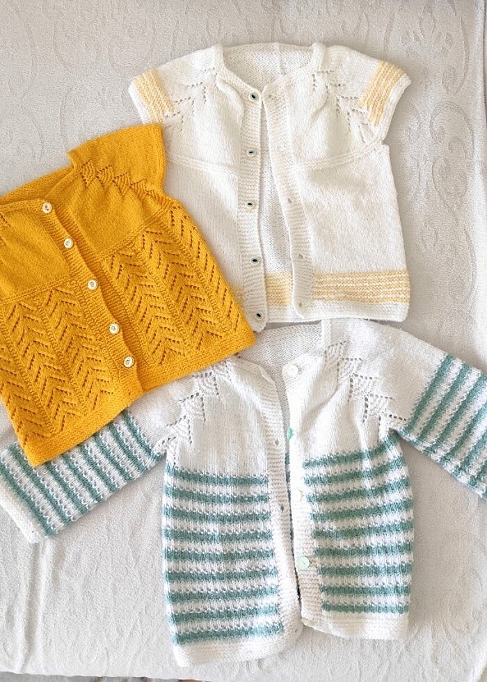 hepsinin fiyatidir el yapimidir temiz kullanildilar. 2-3 yaşa uyar. bir sorunlari yok. gayet rahat ve yumusaklar. uzunluklari resimlerde mevcut. #elyapımı #uzunkol #yelek #ceket #kıslık #yün #bebek #hırka #ceket #düğmeli #kolsuz