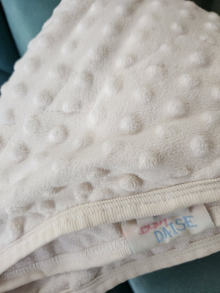 Yumuşak dokulu, beyaz renkte ve kabartmalı noktalı çocuk battaniyesi,bitane bile lekesi vs yoktur.