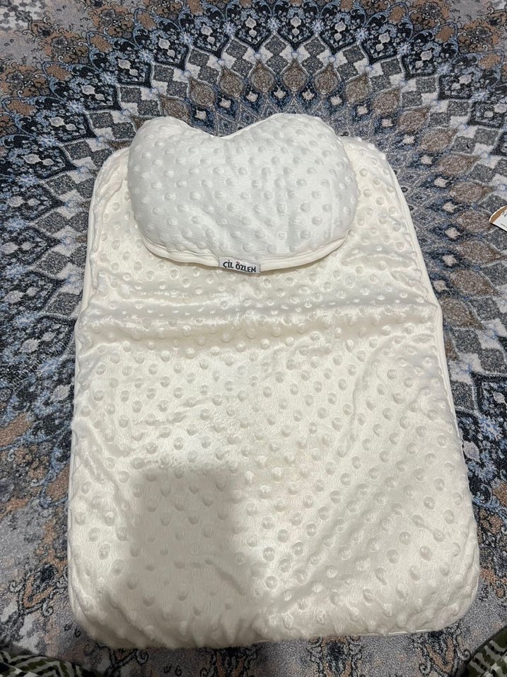 Yumuşak ve kabarık beyaz bebek uyku seti, dokulu nokta deseniyle, konfor için yastık ve battaniye içerir. ️