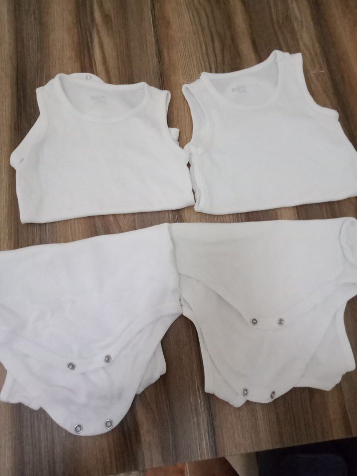 Yumuşak kumaştan yapılmış, alt kısmında çıtçıt düğmeleri bulunan beyaz askısız bebek atletidir.
