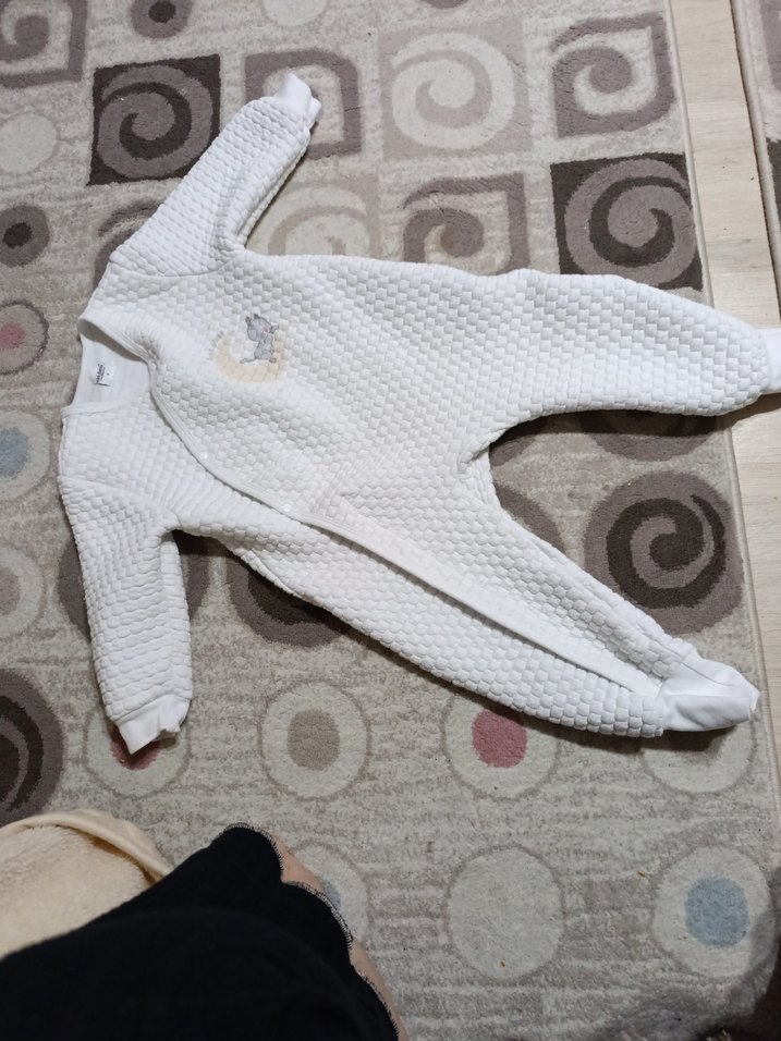 Uzun kollu ve ayaklı, yumuşak ve sıcak beyaz bebek tulumu, uyku sırasında rahatlık sağlar.