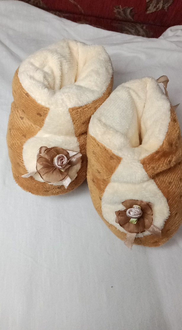 bebek İçin Kahverengi Kürklü Ev Terliği