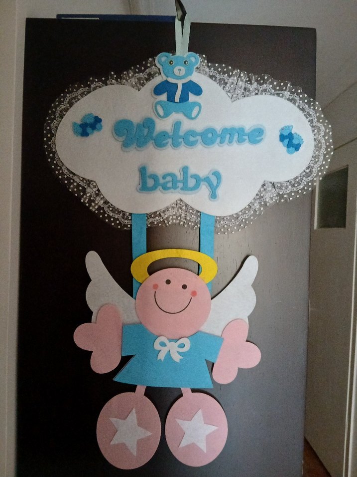 Bebek için Mavi Baskılı kapı süsü