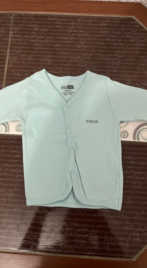 Pastel beyaz renkte, baskılı, önü çıtçıtlı ve yumuşak kumaştan yapılmış bebek içliği.