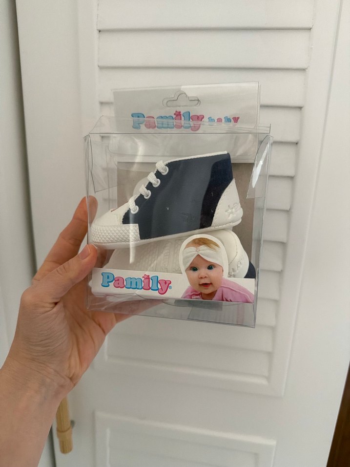 bebekler için beyaz renkli, baskılı ve cırt cırtlı ilk adım ayakkabısı. Kauçuk tabanlı, şık sokak stili için uygundur.