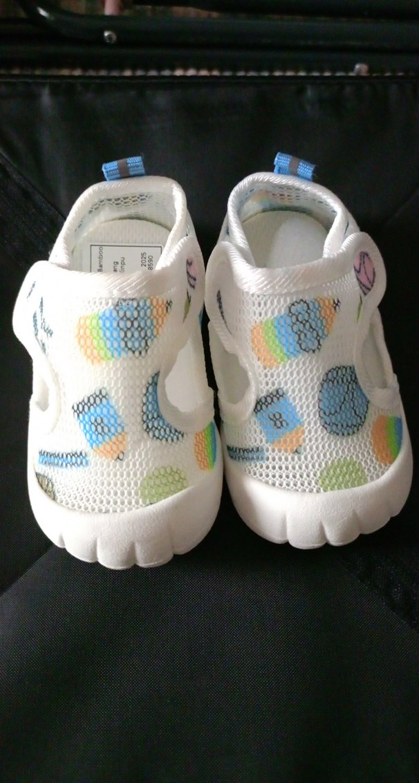 Renkli baskılı, beyaz bebek ilk adım ayakkabısı. Cırt cırtlı, kauçuk tabanlı, trend sokak stili için uygun. temudan alındı hiç kullanılmadı. altında 15 yazıyor