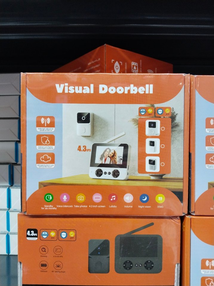 Renkli turuncu görüntülü 4.3 inç ekran, video interkom, fotoğraf çekme ve gece görüşüne sahiptir. Kablosuz ve mobil kullanım destekler, net ses ve müzik seçenekleri sunar.