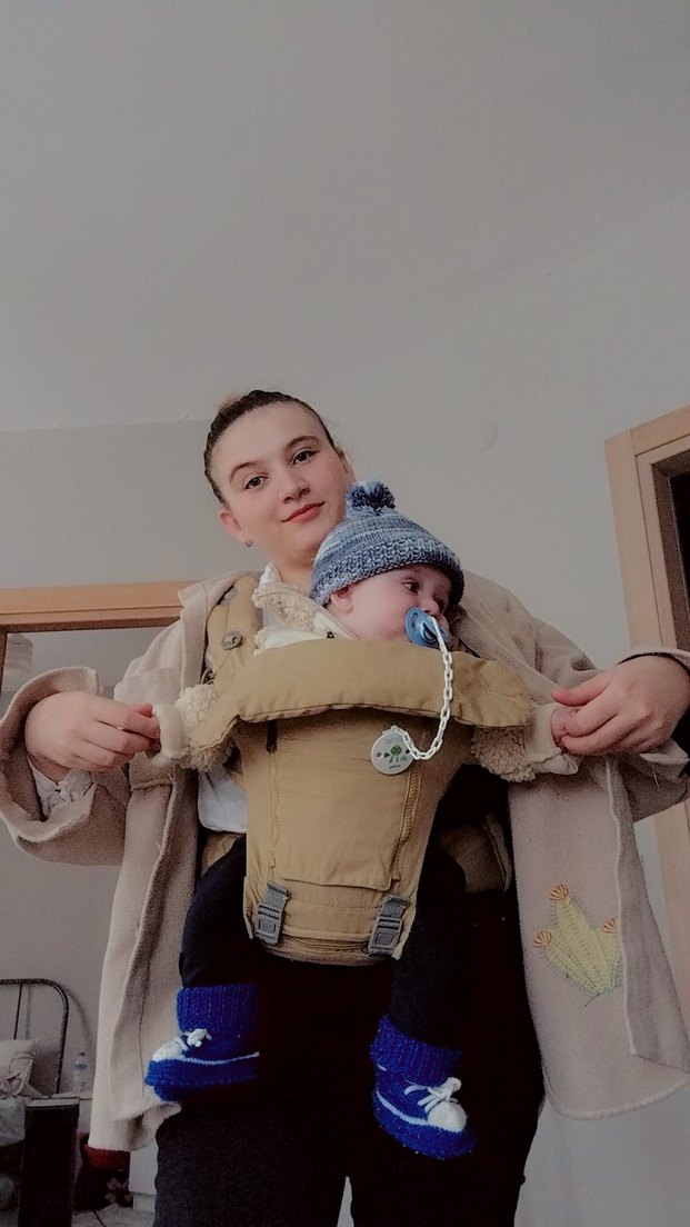 Ürünü ikinci el olarak almıştım.Tertemiz yeni gibi bir sorunu lekesi yok.Ayrılan modelden değil tek parça.Belden kavradığı için ağrı yapmıyor.Yaz bebeği ise fermuarı açıp hava almasını sağlayabilirsiniz.