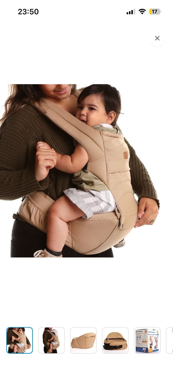 Bej renkli, yumuşak ve destekleyici kumaştan yapılmış, ergonomik oturma alanı ve dolgulu askıları olan bebek taşıyıcı. Ürün yıkandı temiz sadece lekesi var ama çıkmıyor markası ebebek baby plus