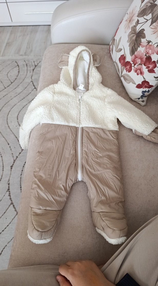Kapüşonlu, yumuşak kürk detaylı kahverengi kız ve erkek için bebek tulumu, rahat ve sıcak tutar. Desensiz, fermuarlı ve ayakları kapalıdır. ❄️ Ebebekten istedim. giydirdiğimde küçük geldi etiketi çıkardığım için iade ede edemedim 5-6 ay için uygundur