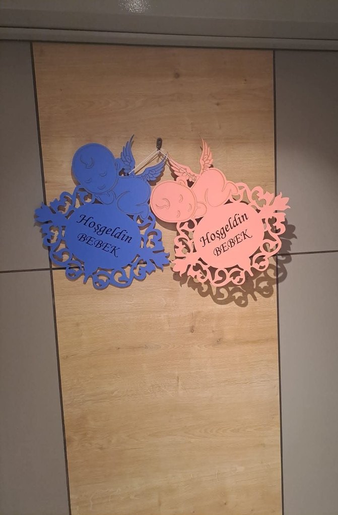 Pastel renklerde, vintage bohem tarzda, "Hosgeldin BEBEK" yazılı bebek karşılama süsleri.
