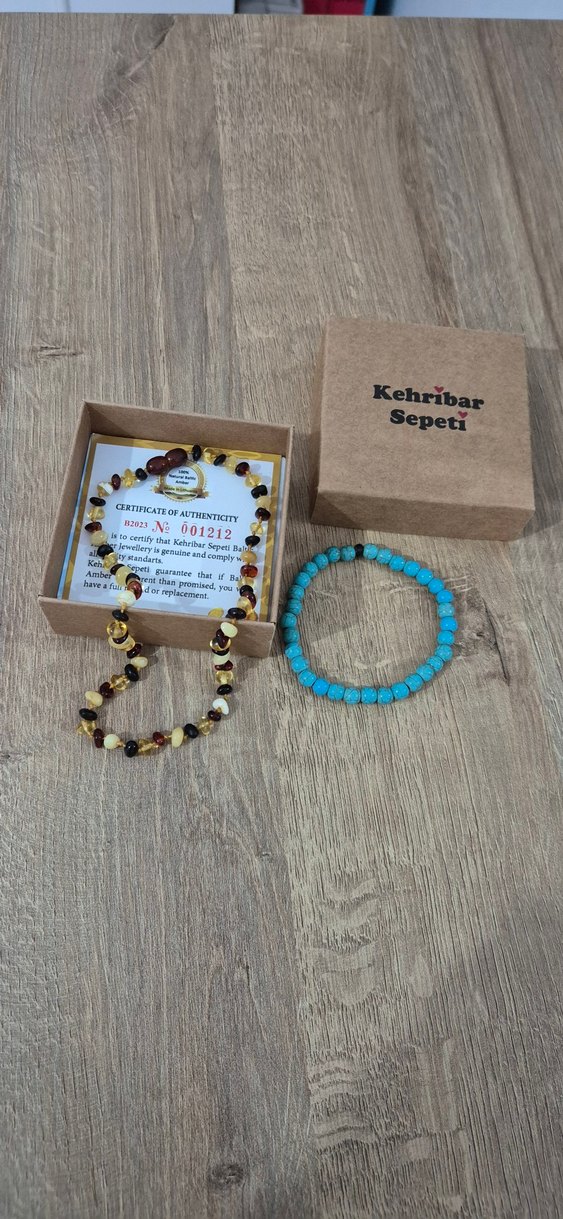 Sertifikalı orijinal bebek kehribar kolye. Hiç kullanılmadı