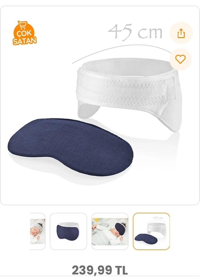 Aldık ama hiç kullanmadık sıfır gibi ürün Görselde ki mağaza fiyatı Paket içinde uyku bandı ve kepçe kulak önleyici bulunur. Kepçe kulak önleyici bebeğin kulağı henüz kıkırdak halindeyken kulaklarının kıvrılıp yanlış şekillenmesini engeller. Uyku bandı uykuya dalmakta zorlanan bebekler için tasarlanmıştır. Uyku bandı bebeğin yalnızca gözünü kapatır, burnu ve ağzı kapanmayarak herhangi bir tehlike oluşturmaz. Yenidoğan bir bebekte kepçe kulak sorunu ilk 3 ayda alınan önlem ile düzeltilebilir.