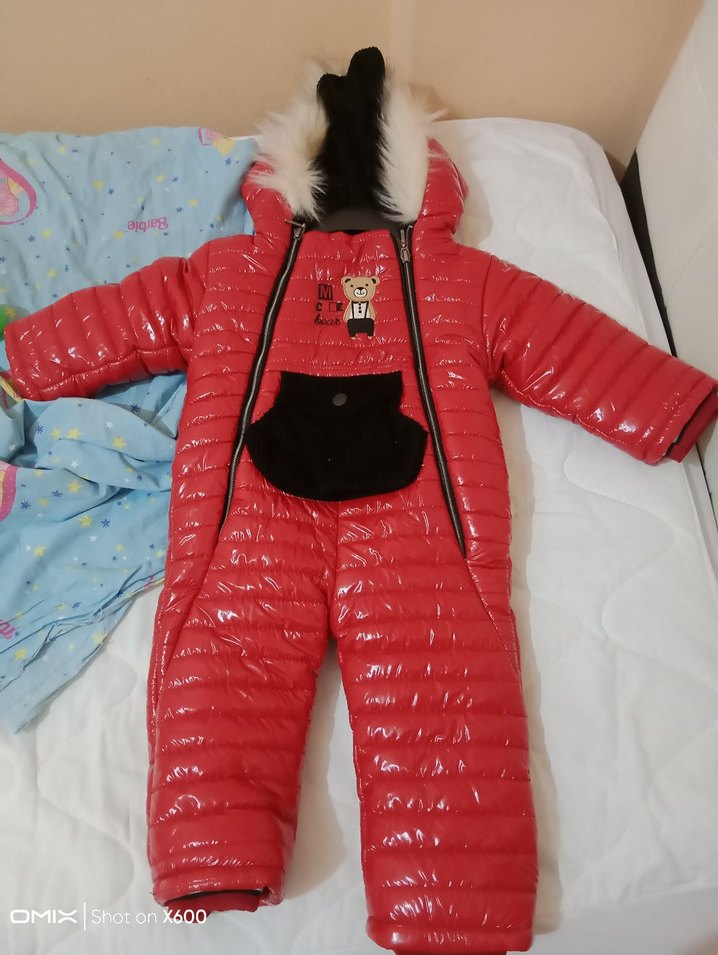 Kırmızı bebek tulumu, kürklü kapüşon ve notched yaka detaylarına sahiptir. Renkli, desen içermeyen tasarımda önünde ayıcık motifi ve siyah cep bulunur. OMIX markalıdır. ❄️