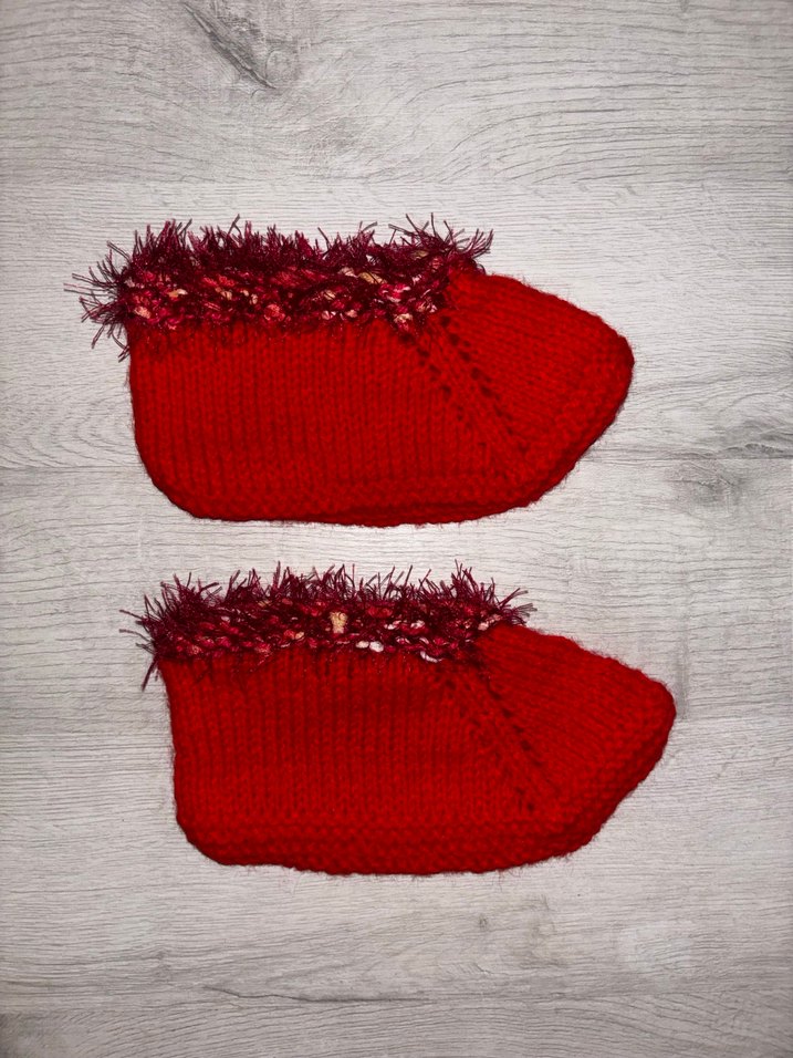 Bebek Kırmızı Örgü Ev Patiği