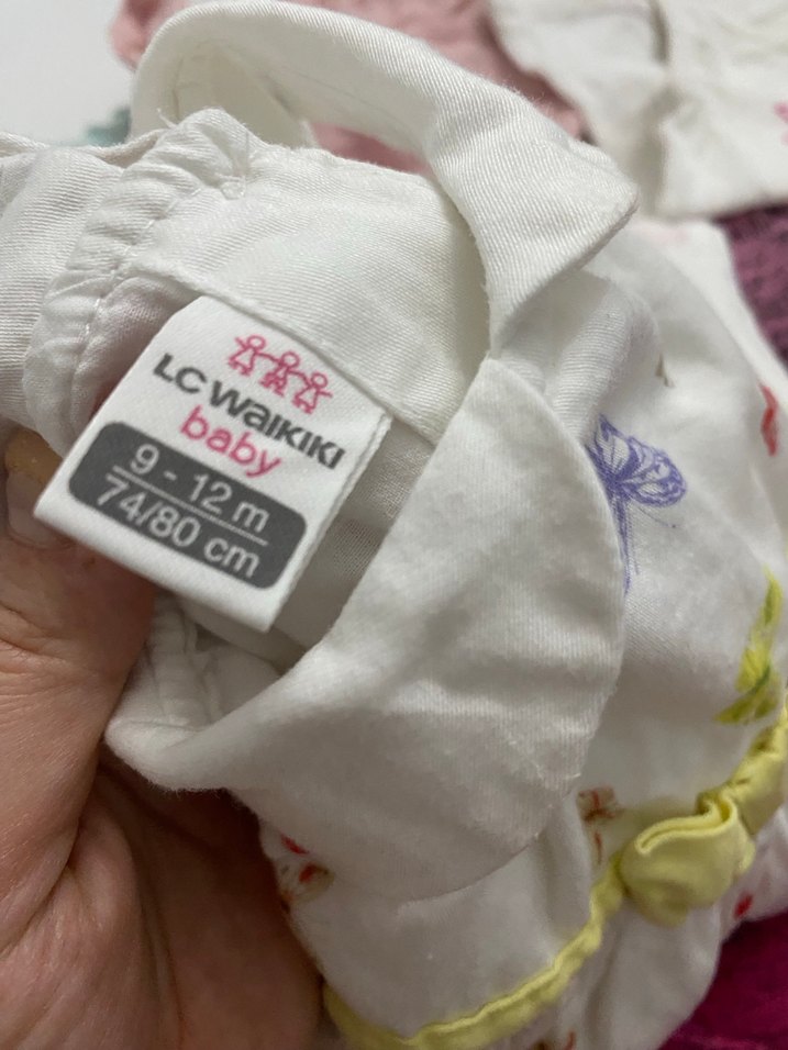 Pastel baskılı beyaz bebek önlüğü, 9-12 ay ve 74/80 cm beden için uygundur. Yumuşak ve rahat kumaş. 15 Parça üründür ( Yanında ekstra kıyafet göndereceğim Görselde yoktur .)