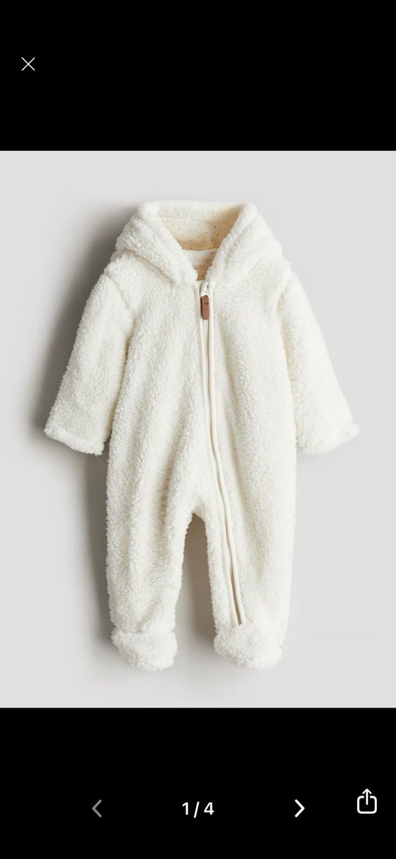 Beyaz, kürklü detaylı, kesimli yakalı bebek kız tulumu. Pastel renkli ve desensiz tasarımı soğuk havalar için sıcaklık ve konfor sağlar. ❄️4-6