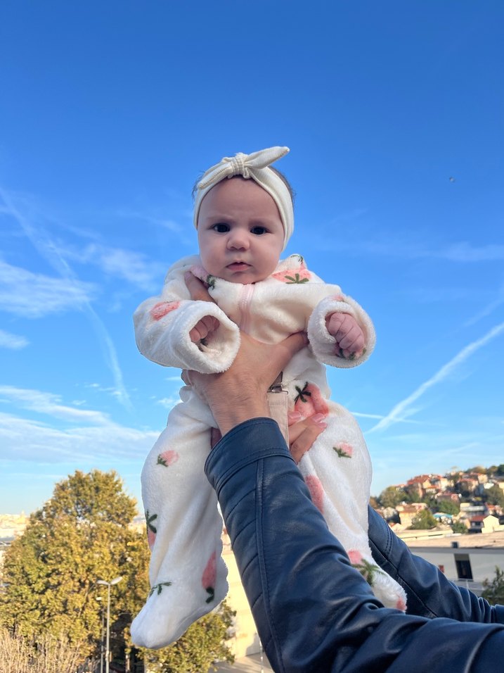 Bebek kız tulumu, yüksek yakalı ve puf detaylıdır. Pastel beyaz tie-dye deseniyle sıcaklık ve konfor sunar. ❄️