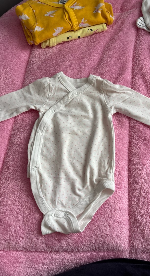 Pastel beyaz renkte, uzun kollu ve V yakalı bebek kız body. Ön ve alt kısımda kolay giydirme için düğmeler bulunur. Yumuşak ve rahat kumaşlıdır.
