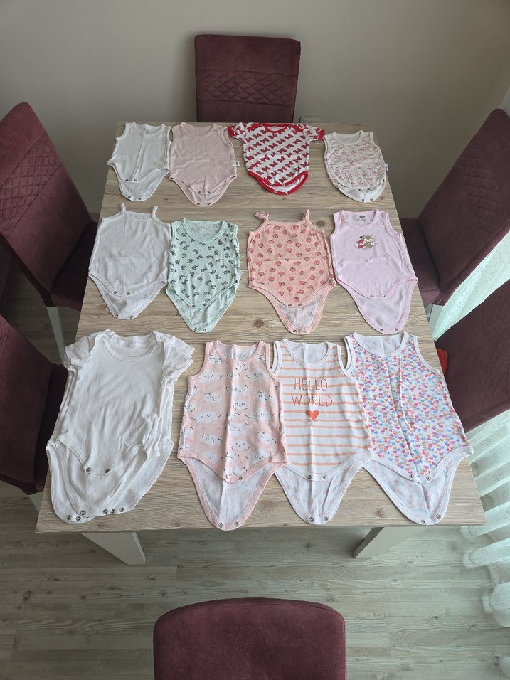 15 adet zıbın fiyatıdır. 3 aydan 18 aya kadar zıbınlar vardır. Temiz kullanılmıştır. 2 beyazda minik yırtık var çok minik. 1 tane renkli de çay lekesi gibi bir leke var fotoğrafta yer verdim. Lcw ve hellobaby markalardır.