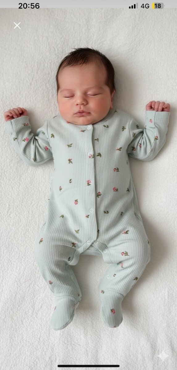 Pastel renkte, baskılı ve düğmeli ön kısmı ile kolay giyilen bebek kız hastane tulumu. Yumuşak ve rahat kumaş.