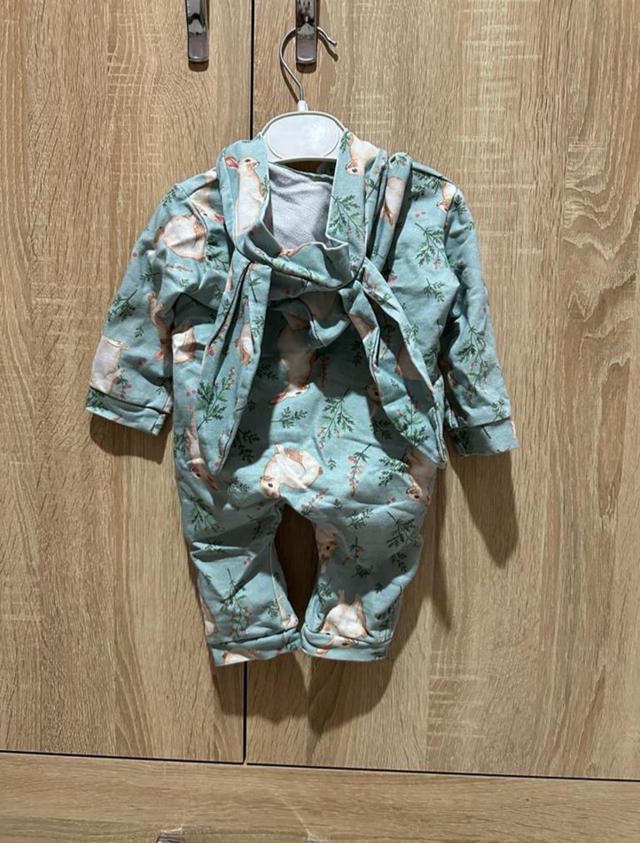Bebek kız tulumu, pastel gri tie-dye desenli, kesik yakalı ve düğmeli tasarıma sahiptir, sıcak ve şık bir görünüm sunar. ❄️ unisex bebek tavşan tulum 1 kez giyildi kusuru yok marka temsili 6 9 ay