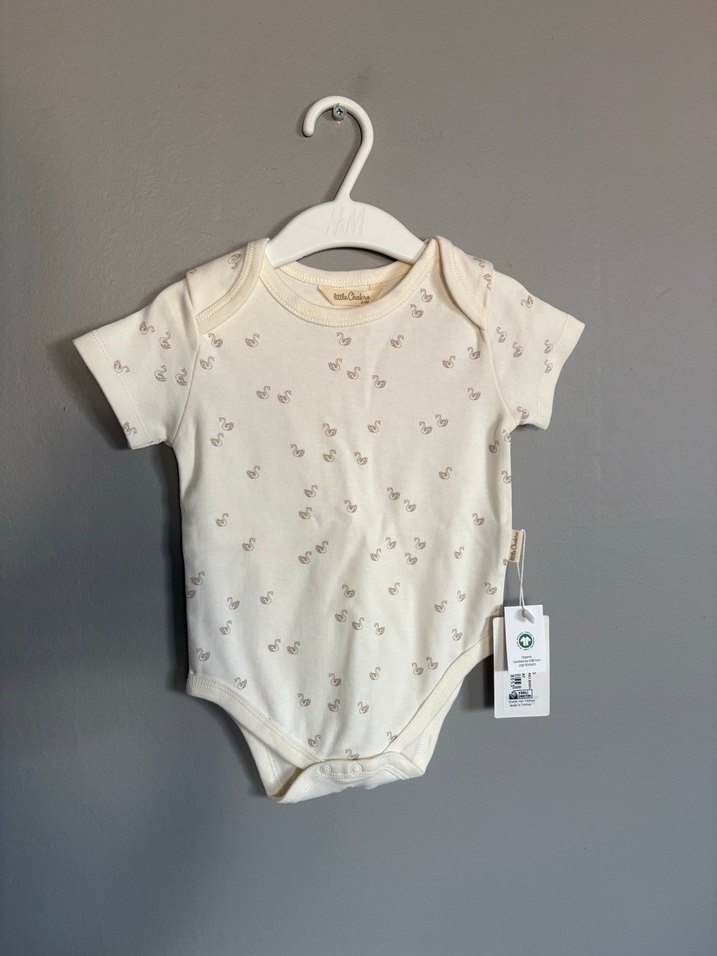 Kısa kollu, bisiklet yaka, pastel beyaz renkli, baskılı bebek kız body. Rahat ve şık kullanım sağlar. 6-9 ay
