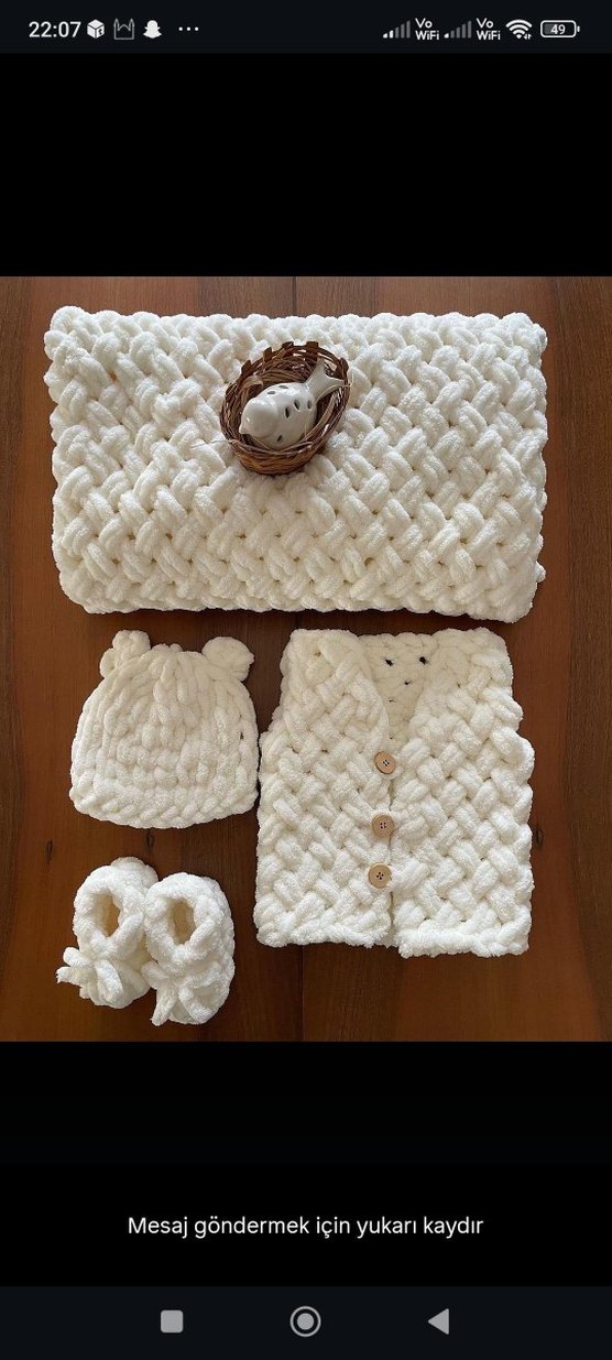 Bebek Kız Örgü Beyaz Kıyafet battaniye seti