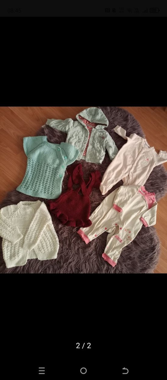3-6 ay Bebek kız için örgü beyaz uzun kollu, yumuşak ve hafif renkli rahat bir takım. Katmanlama için uygundur.