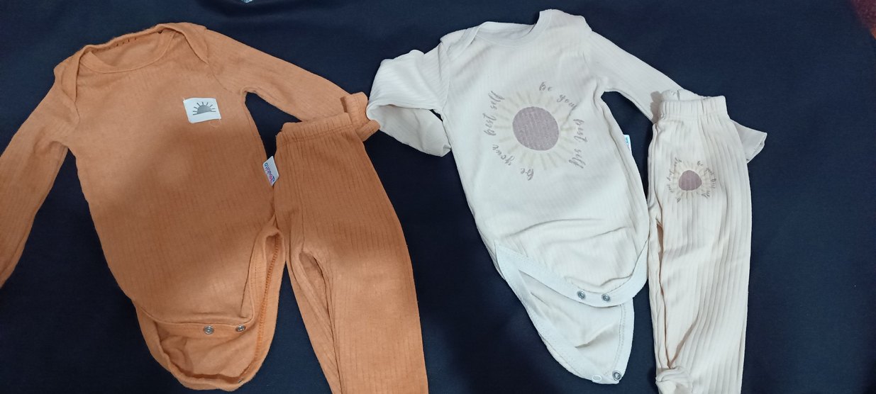 ürünler temizdir ikili satiliyorBebek kız için uzun kollu, baskılı ve düğmeli üst ile pastel bej renkli rahat pantolon takımı.