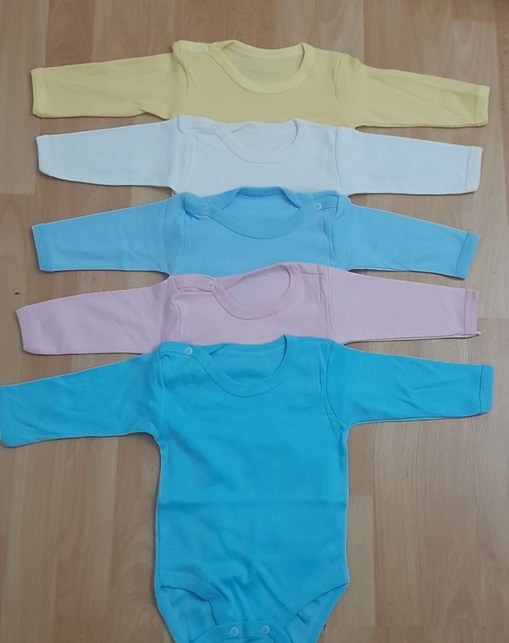 Uzun kollu, pastel renklerde bebek kız body. Yuvarlak yaka ve kolay giyme için çıtçıtlı, yumuşak ve rahat kumaşlı. ADET FİYATIDIR