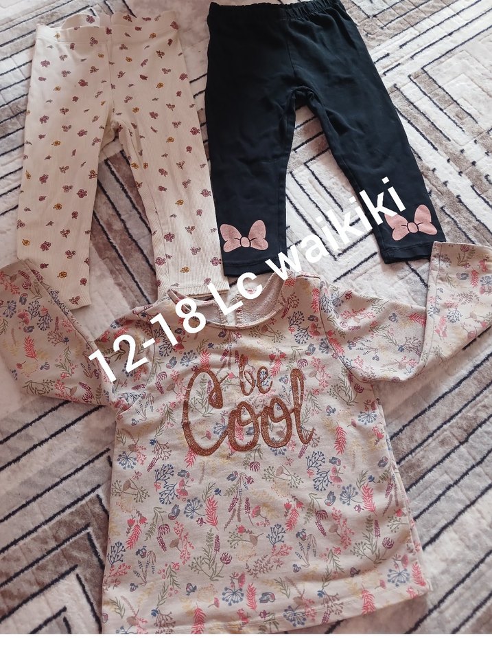 Bebek kız için uzun kollu, çiçek desenli "Be Cool" yazılı örme üst ve iki adet pantolon, biri çiçekli diğeri siyah fiyonk detaylı.
