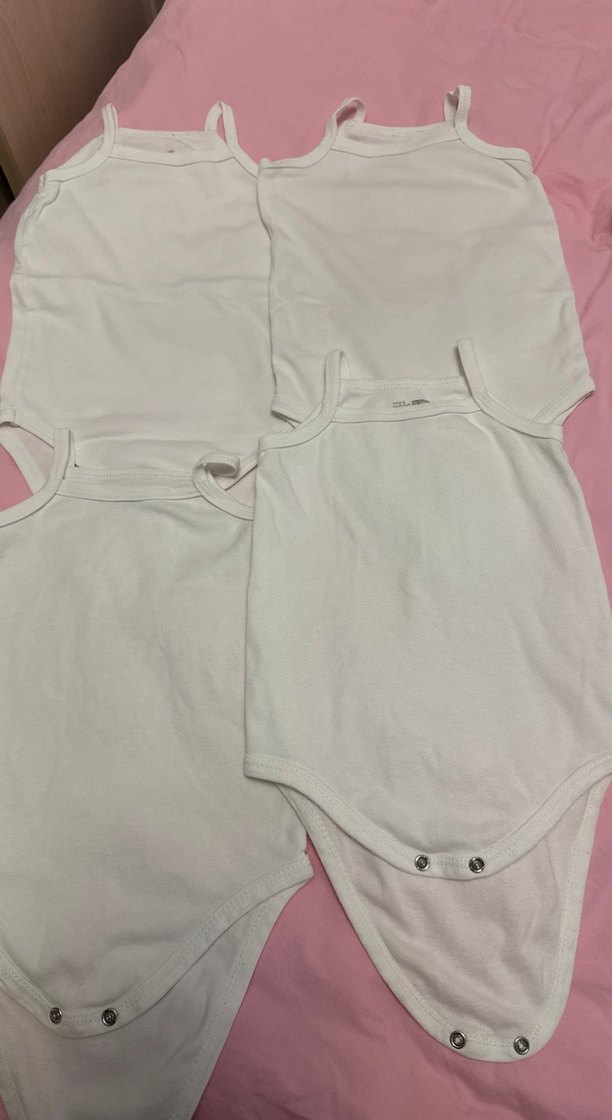 Kolsuz, beyaz pamuklu bodysuitler, yuvarlak yaka ve sade deseniyle rahat ve şık bir sokak stili sunar. Bebek erkek için uygundur.