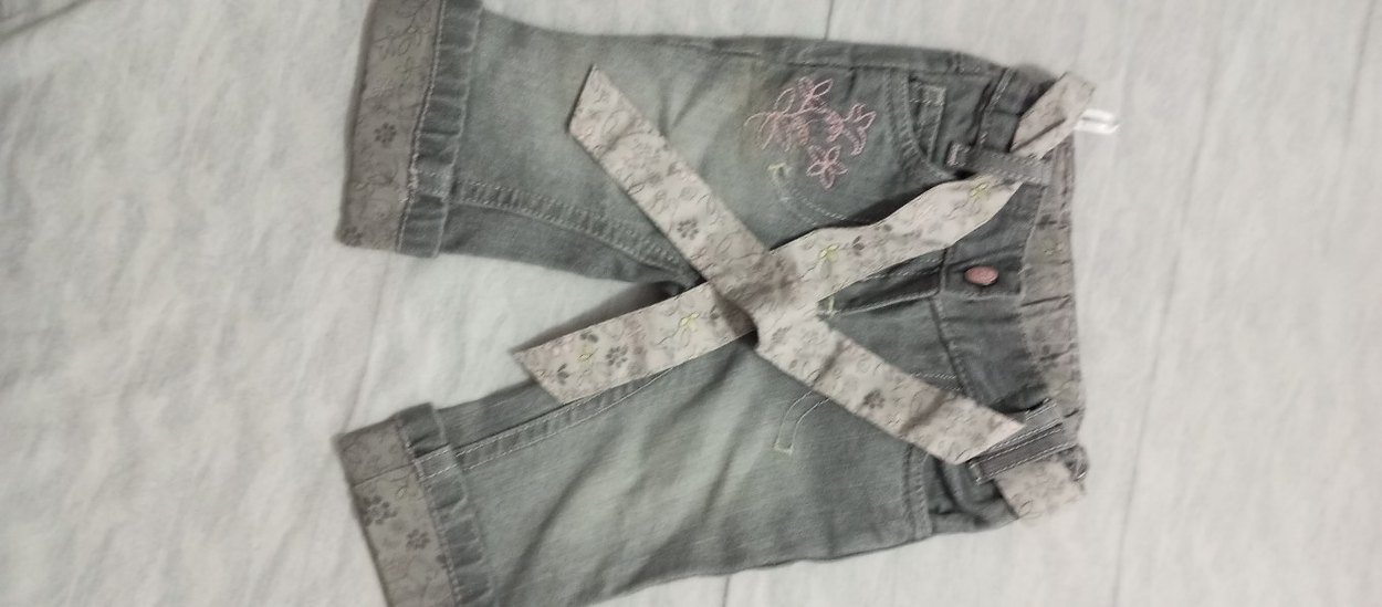 Gri renkte, nakışlı çiçek desenlerine kemer minicik bir kot pantolon disney marka bel lastikli