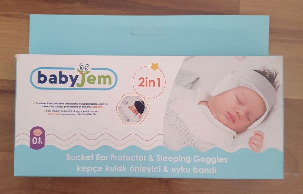 Kullanılmadı 0 ürün kutulu Pastel tonlarda, baskılı desenli ve yumuşak polar kumaştan yapılmış 2'si 1 arada bebek kulak koruyucu ve uyku bandı.