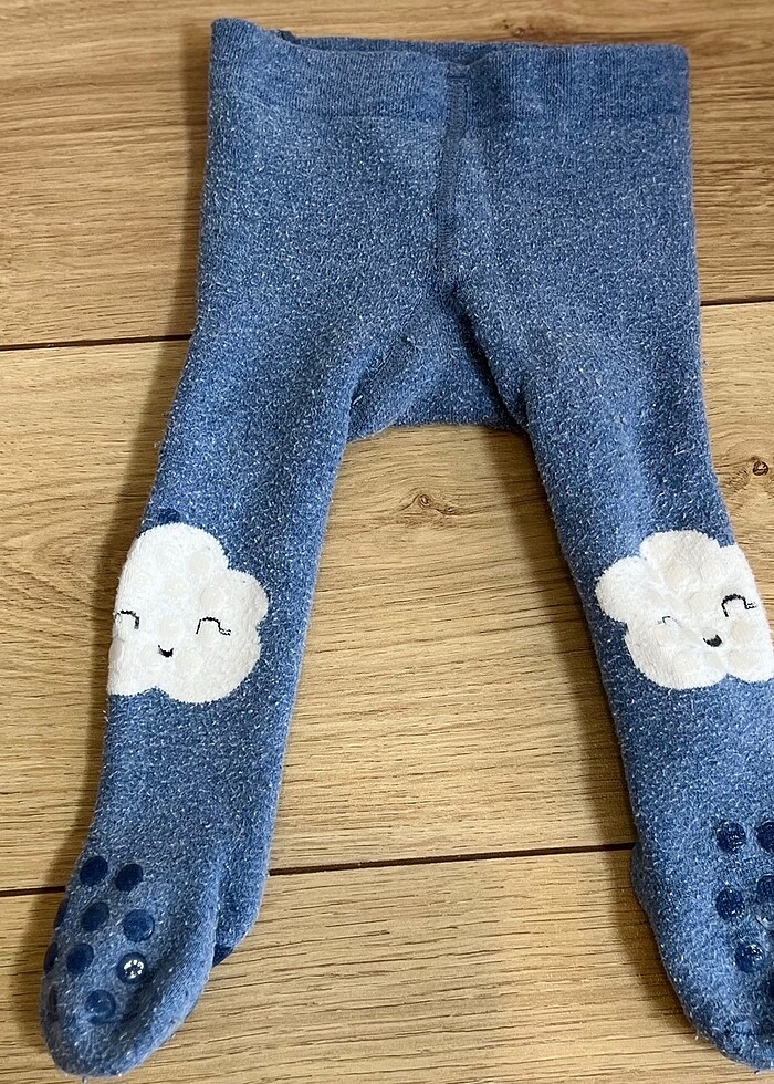 Mavi renk Bebek Külotlu Çorap. Kız/Erkek için uygun. Bulut desenli. Kalındır, sıcak tutar. 1 defa giyildi. Ürün Almanya’dan alınmıştır. Beden 3-6 ay. Hızlı Kargo