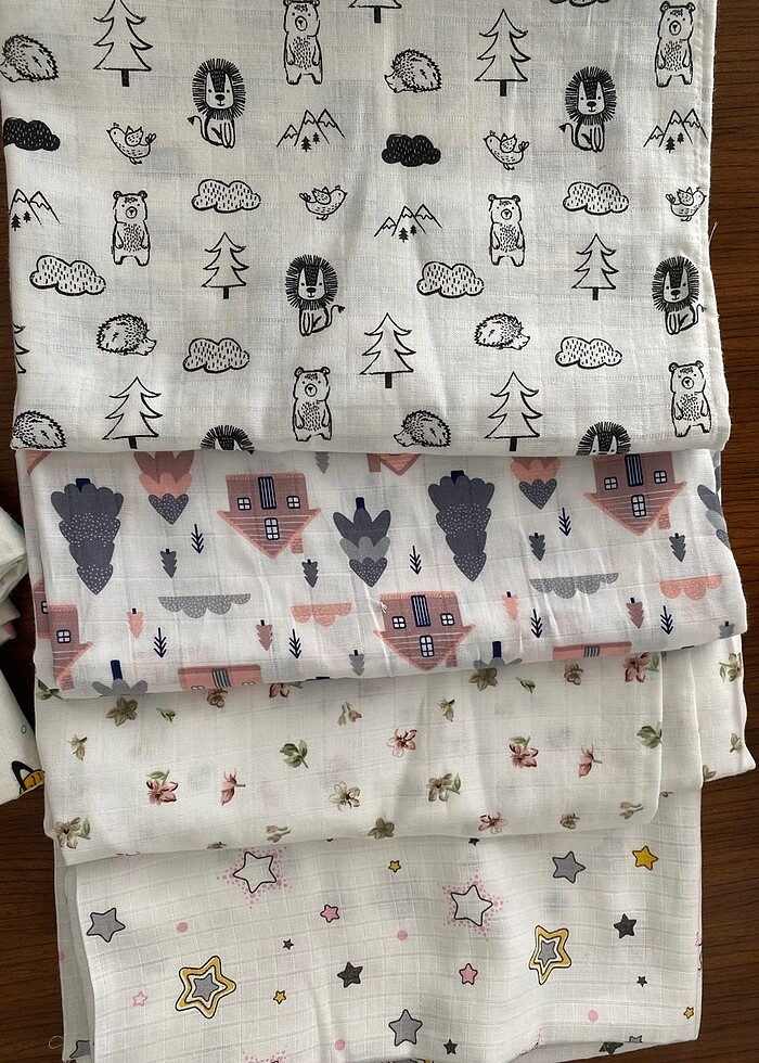 Müslin kumas özel dikim, çift katlı. Ölçüleri: 77/ 1.10 mt