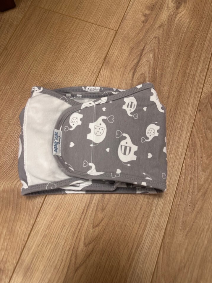 Gri renkte, yumuşak ve sıcak kumaştan yapılmış, desenli bebek kundak birkez kullanıldı kolik bebeklere uygun 0-3 ay için