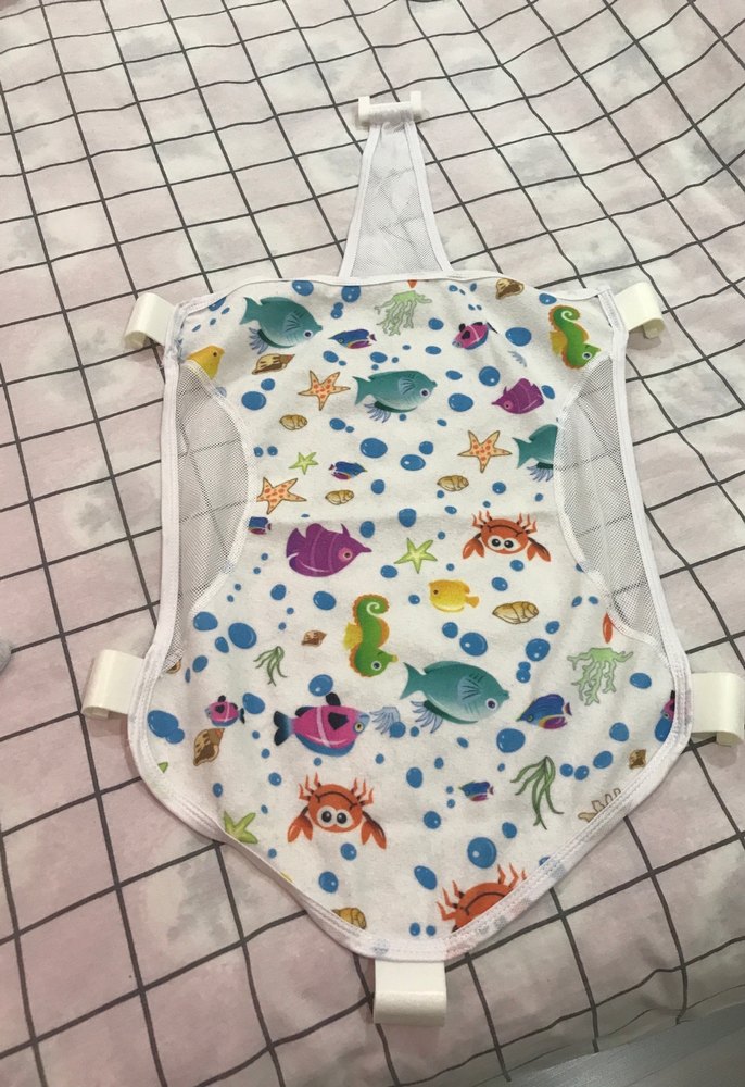 Balık, yengeç ve deniz canlıları desenli renkli bebek önlüğü. Ayarlanabilir kayışlarla güvenli kullanım sağlar.
