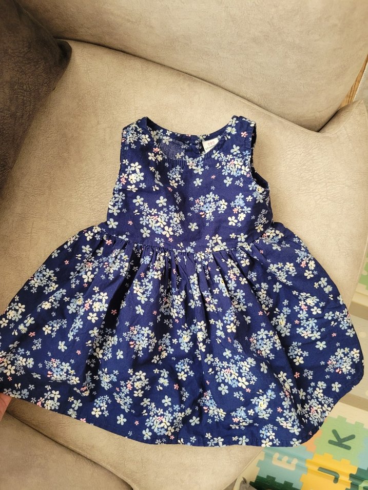 Lacivert çiçek desenli kız bebek elbisesi. Herhangi bir deformesi bulunmuyor.