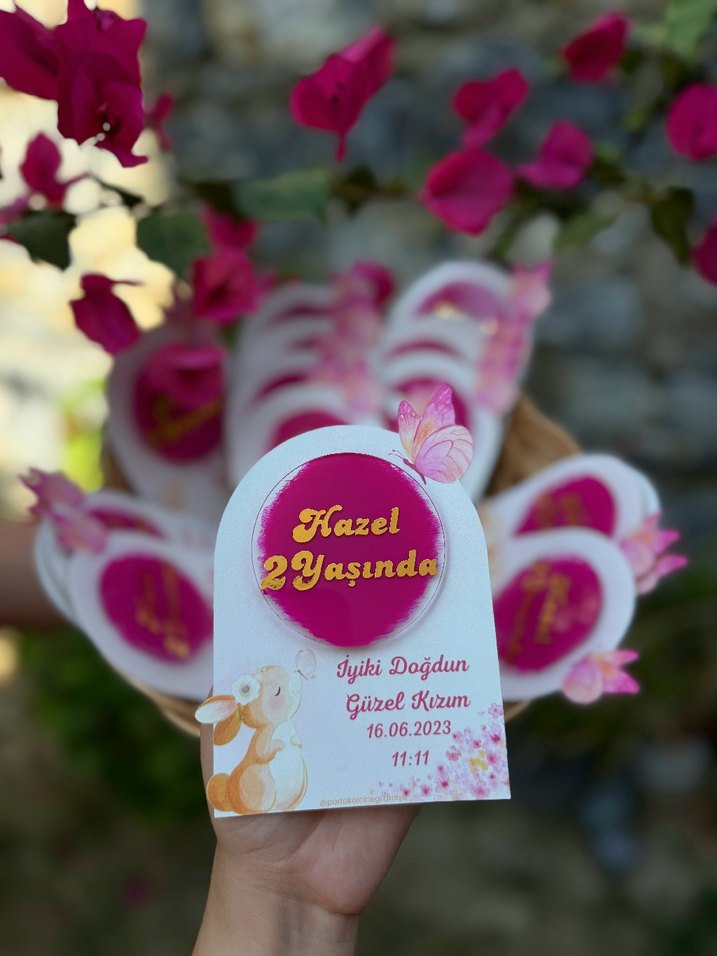 Kişiye özel sevimli tavşan ve kelebek figürlü, pembe magnetler Detaylı bilgi için mesaj atınız #pleksimagnet #bebekmagnet