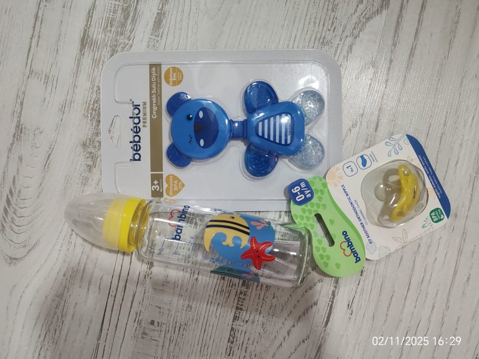 Bebek Mavi Biberon ve Diş Kaşıyıcı emzik