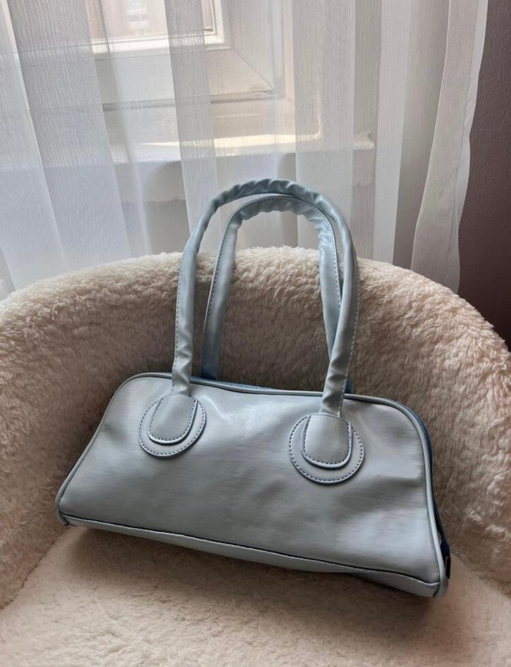 Bebek mavi sade tasarımlı kadın günlük çanta.