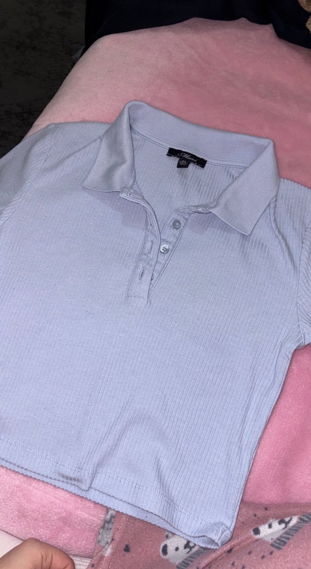 Kız çocuklar için pamuklu, gri renkte, düğmeli yakalı ve kısa kollu, dar kesim polo tişört. Rahat sokak stili için uygundur.