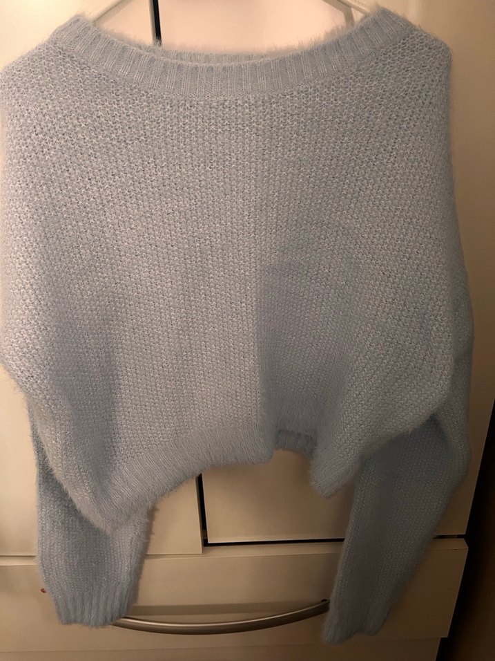 Yumuşak yünden uzun kollu ve bisiklet yaka, fitted kesim bebek mavisi kadın triko. Günlük kullanım için şık ve rahat. Fotoğrafta arkadında bir çizgi gözüküyor ama kendinden o şekilde giyince düzeliyor