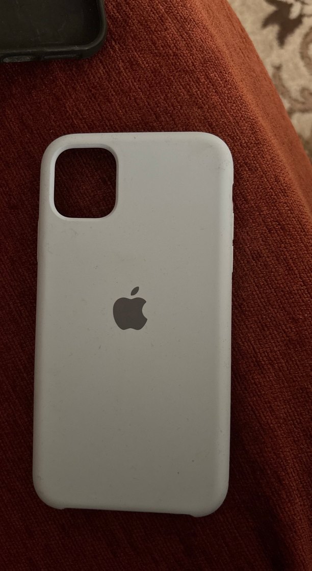 Gri Apple logosu ve bohem tarzıyla beyaz, sade tasarımlı telefon kılıfı.