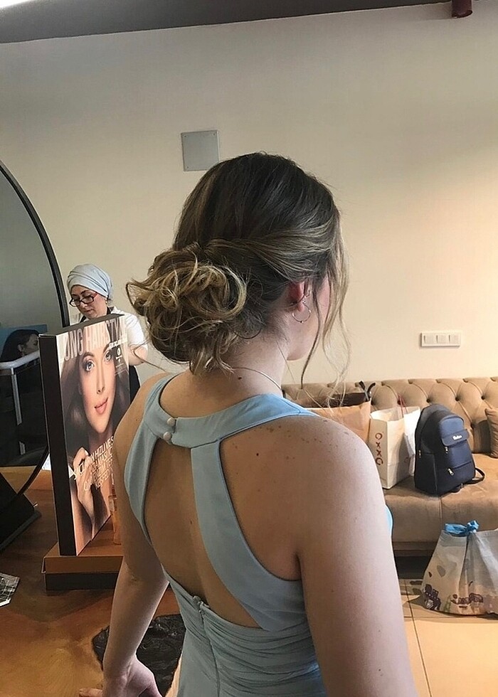 Bebek mavisi uzun abiye